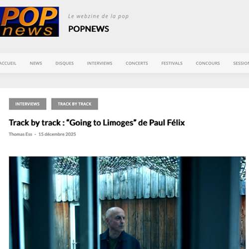 Interview "titre par titre" à propos de l'album chez Pop News. [...] En 2024, un quatre titres avant-coureur marquait le retour à la chanson de Paul Félix, voix déployée et magnétique de Gamine (1982-1990). Le présent album, enregistré et produit par Fabien Cahen, confirme le talent mélodique et l’écriture en filigrane du chanteur féru de pop anglo-saxonne à guitares. A la façon de Daniel Darc, le « come-back » ne joue pas la carte de la nostalgie, mais a la fière allure du renouveau. Par téléphone, Paul Félix se prête au jeu du track by track de Going To Limoges. [...]